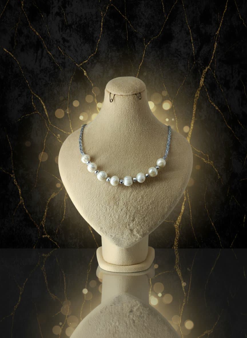 گردنبند مروارید سفید, دستبند مروارید کامل سفید, دستبند نیمه مهره سیاه, دستبند نیمه مهره سفید